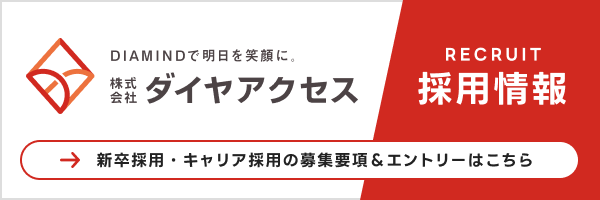 ダイヤアクセスが求める人財とは「VISIONを実現するためにBASIC CARDやDNA BOOKを理解、浸透、継承していける人。DIAMINDの精神で、仲間(会社)やお客様、会社のために一生懸命になれる人。愛社精神をもっている人。熱意でチャレンジし続け、成果にこだわるプロ意識の高い人。」です。